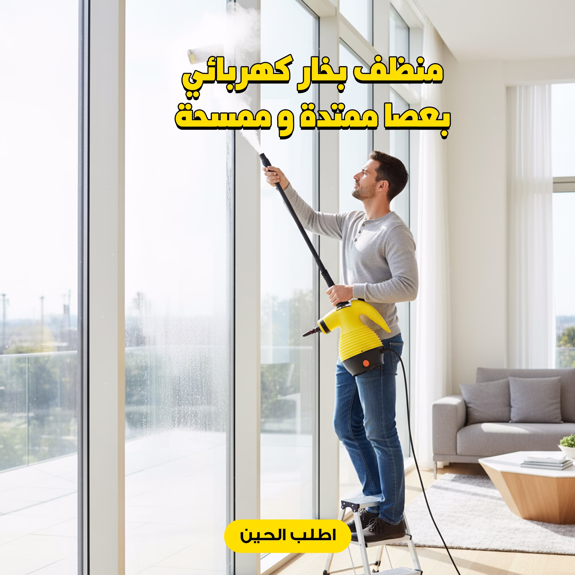منظف بخار كهربائي بعصا ممتدة و ممسحة بضمان عامين